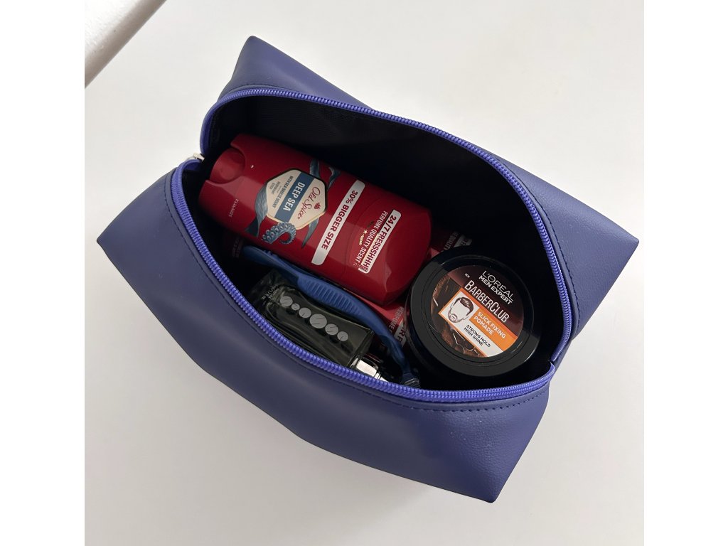 Je dostatečně prostorná pro všechny pánské nezbytnosti – ať už sprchový gel, deodorant nebo holicí strojek.