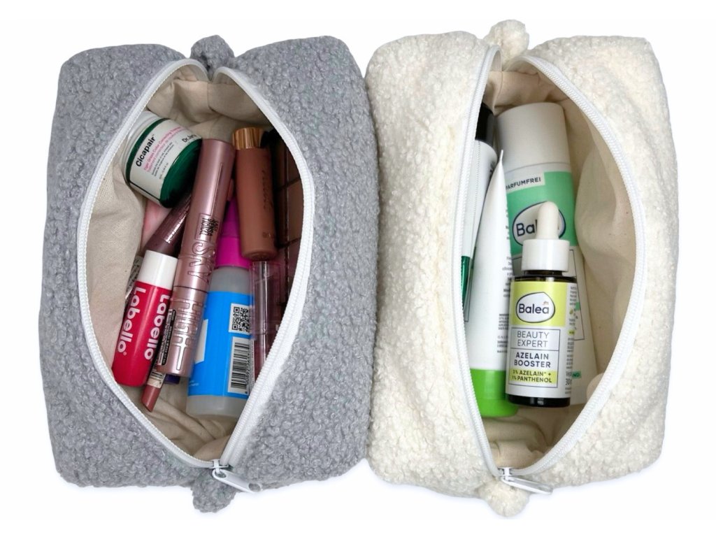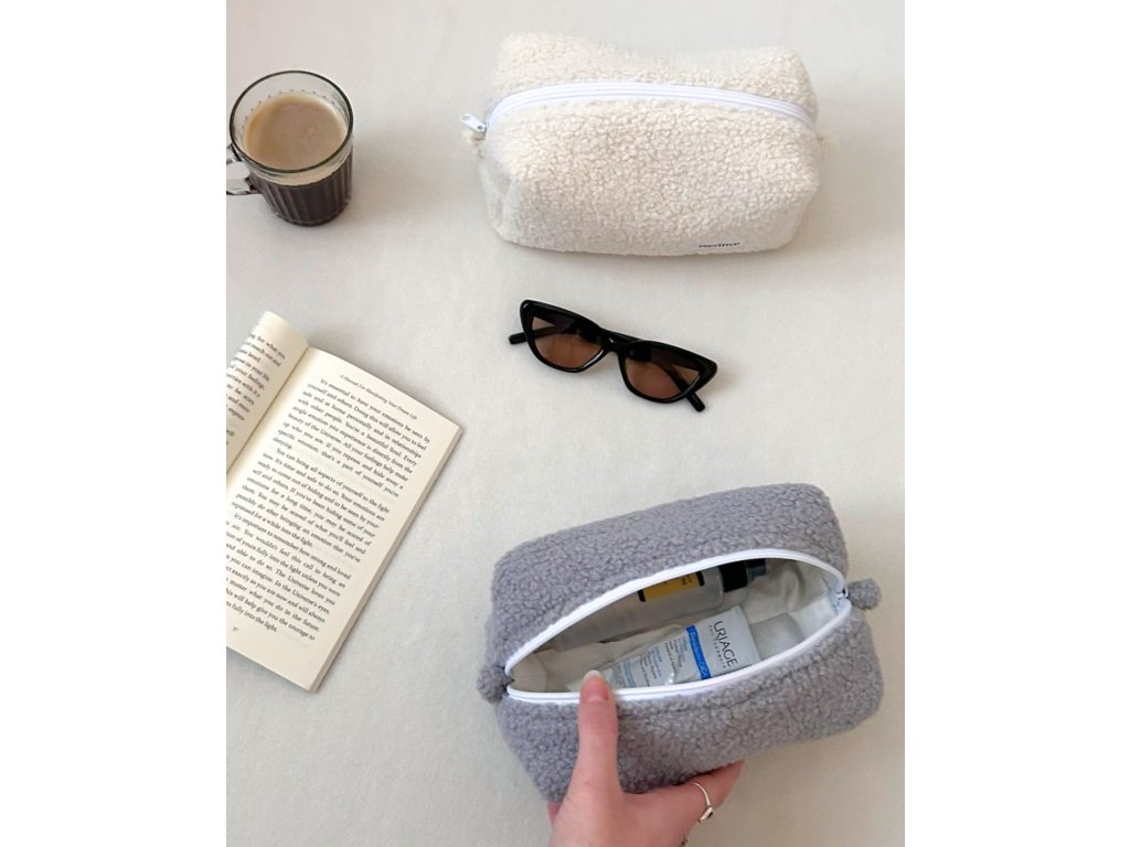 Kosmetická taška je ušitá z měkké plyšové látky, která je příjemná na dotek. Vnitřní podšívka je z 100% bavlny v přírodní béžové barvě. Uvnitř taštičky je výztuha, díky které taštička drží tvar, je příjemně nadýchaná a působí stabilně.