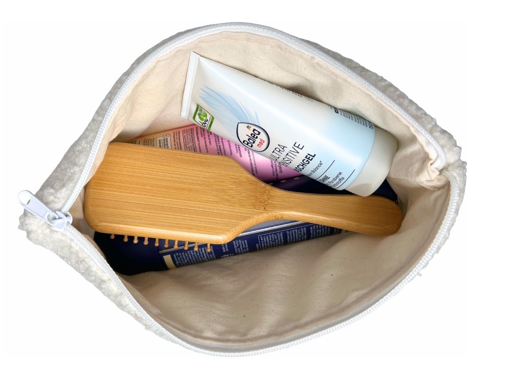 Plochá kosmetická taška | Teddy (krémově bílá)