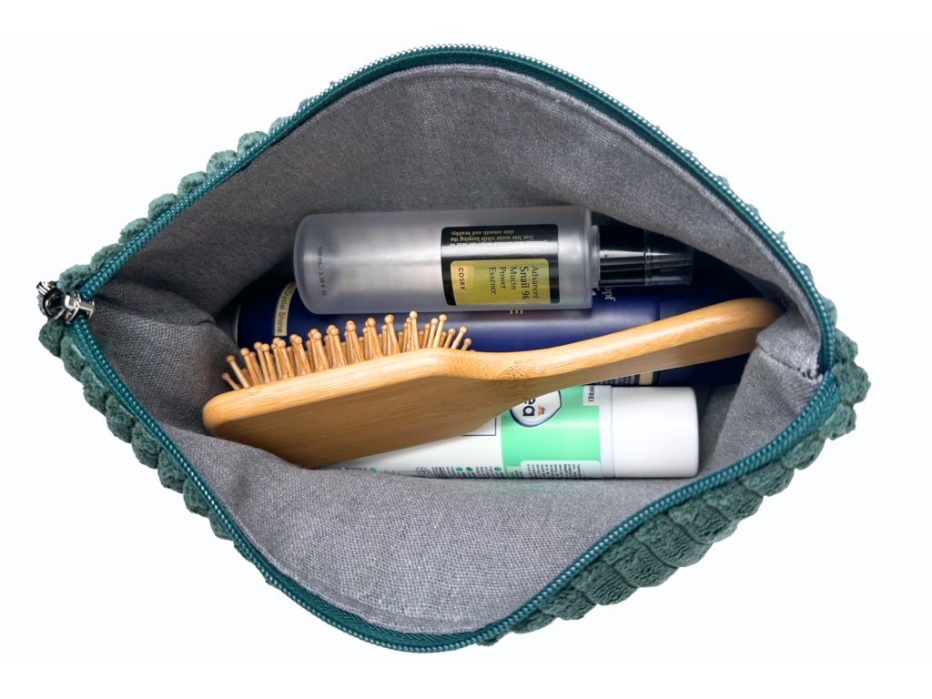 Tento typ taštičky je ideální na cestování. Díky plochému tvaru nezabírá tolik místa v kabelce ani v kufru a snadno se do něj vejde vše potřebné.