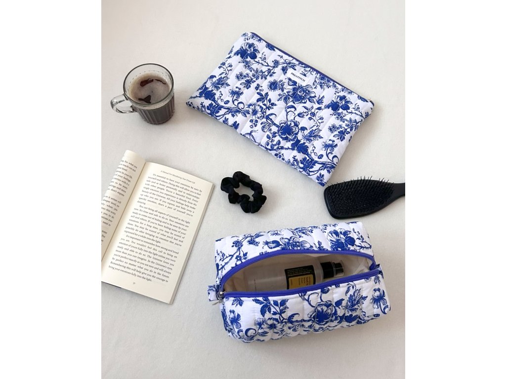 1x Plochá kosmetická taška Prestitch | Floral (modrá)