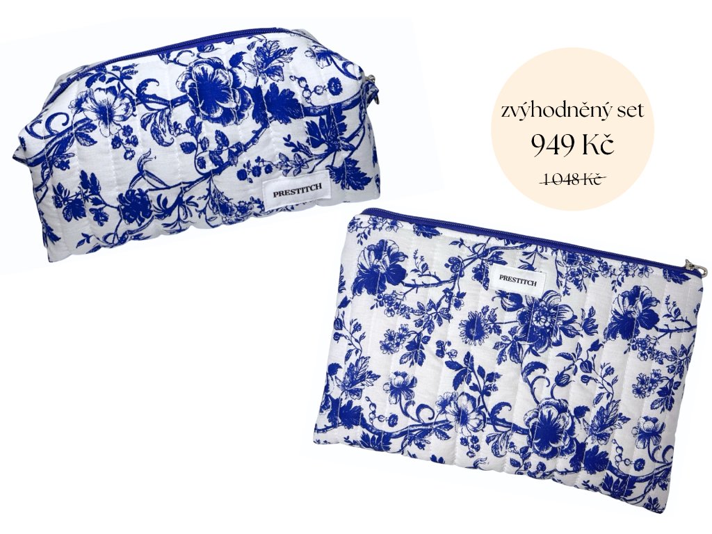 Ručně šitý set dvou kosmetických taštiček Prestitch, který vznikl v malé dílně v České republice.