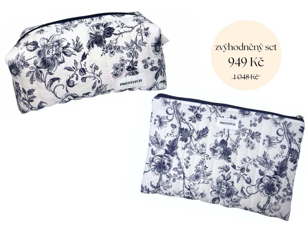 Ručně šitý set dvou kosmetických taštiček Prestitch, který vznikl v malé dílně v České republice.