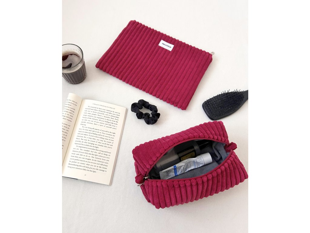 1x Plochá kosmetická taška Prestitch | Velvet (bordó)